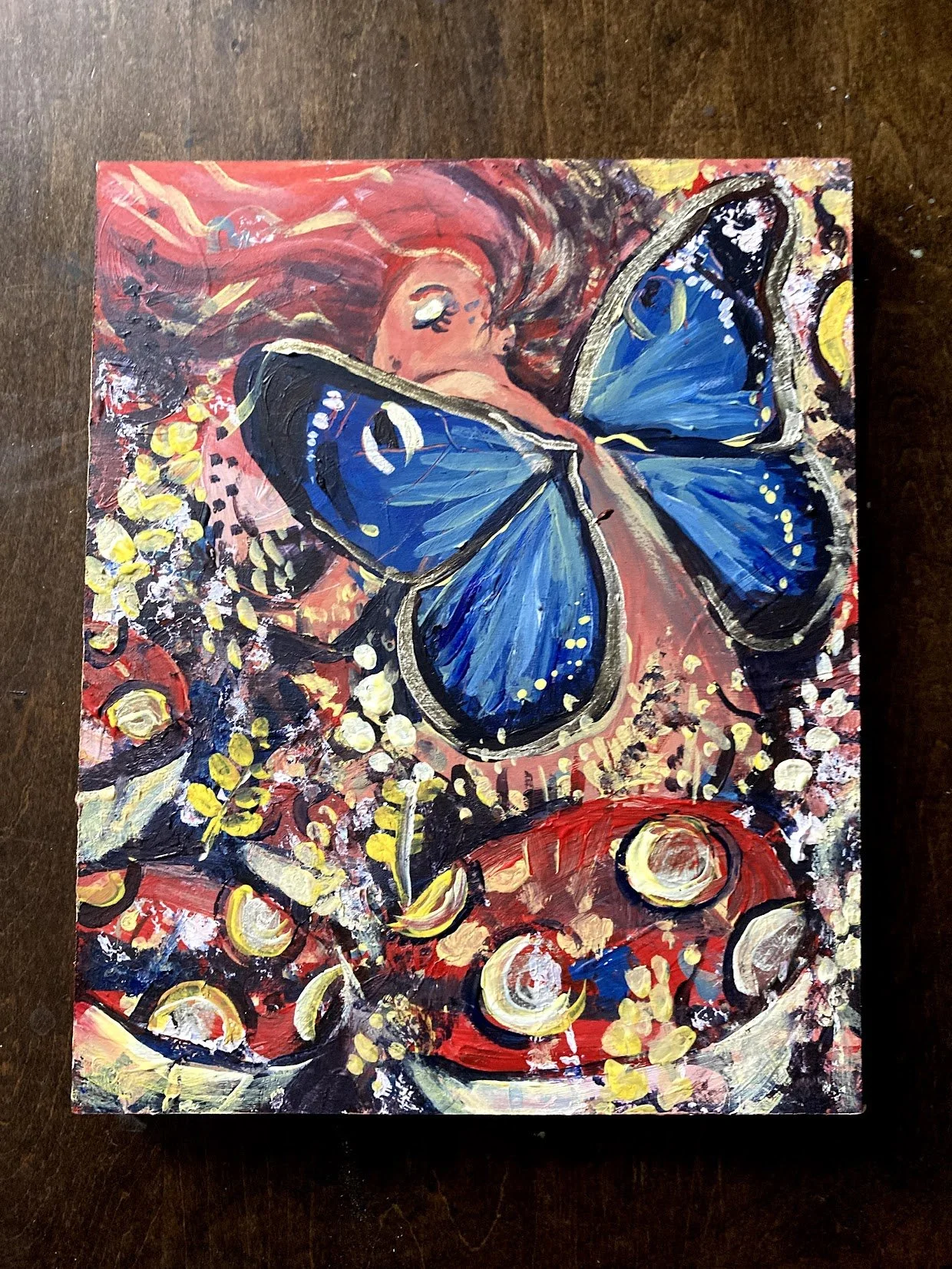 Mixed media on wood panel